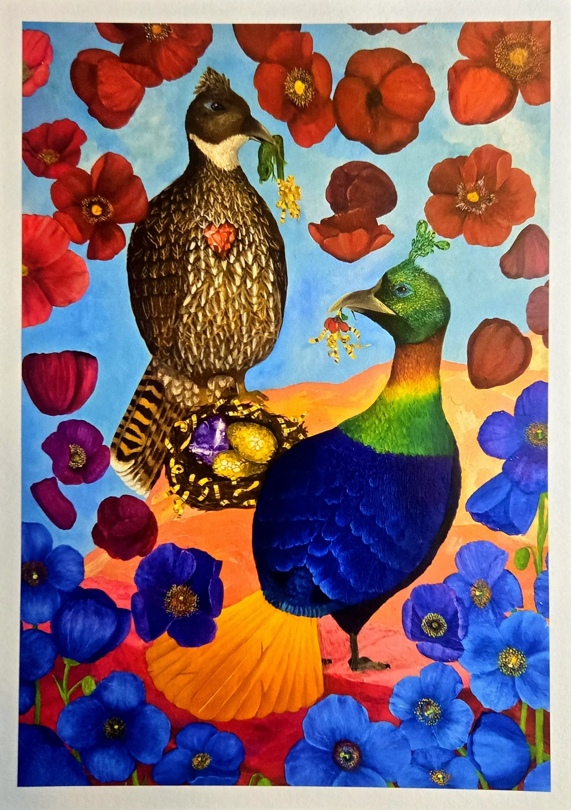 My artistic journey is deeply influenced by the natural world. Most of my subjects are from nature: animals, plants, bones, and rocks. I create in various mediums, including acrylics, watercolors, and sculpture, allowing me to express my ideas in diverse ways and explore whatever weird little idea is stewing in my brain. My art is whimsical and colorful, sometimes weird and sometimes beautiful, hopefully all of those things at once.